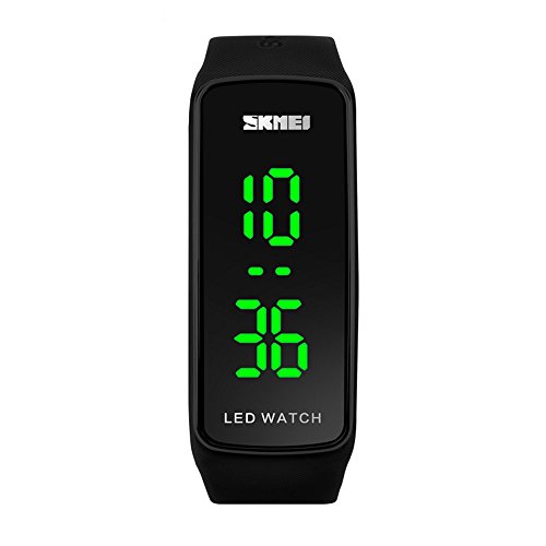 SKMEI 손목시계 남녀 겸용 경량 스포츠 디지털 LED 방수 실리콘 밴드 심플 블랙