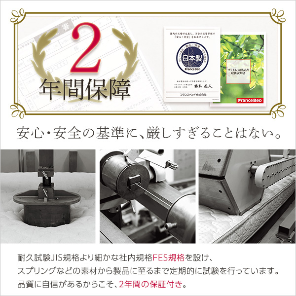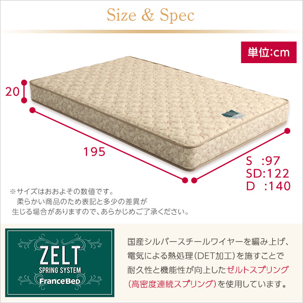 ●フランスベッド日本製マットレス(ダブル)ゼルトスプリングマットレス採用 、2年間保証 ZT-W025