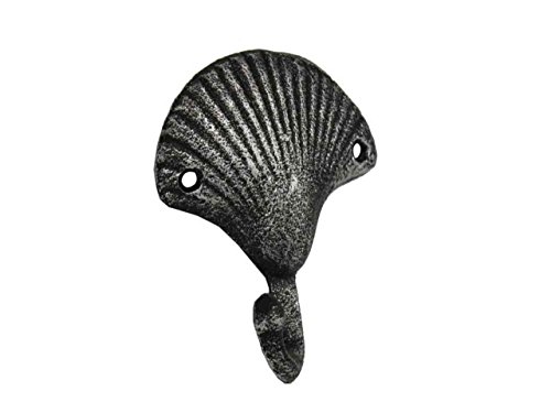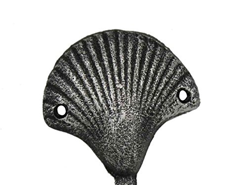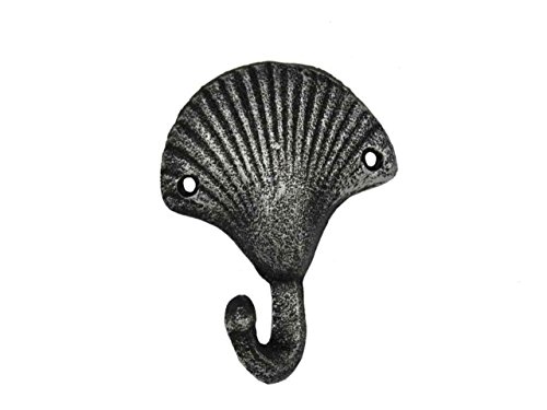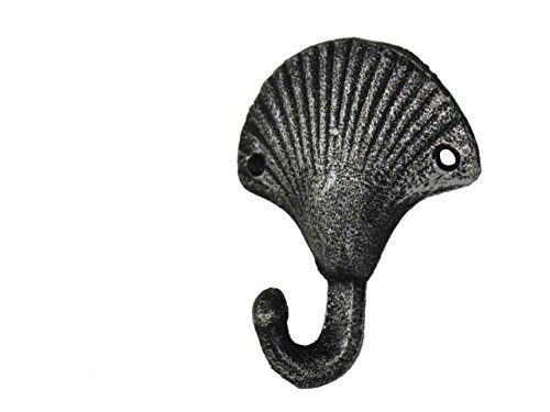 Hampton Nautical Decorative Cast Iron Seashell Wall Hook, Antique Silver