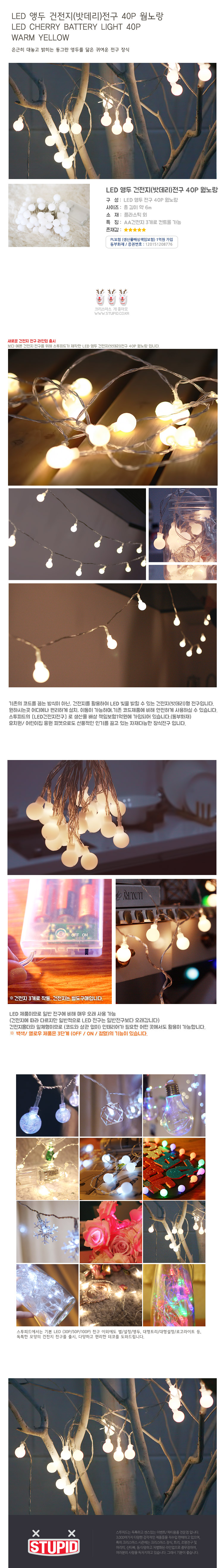LED 앵두 건전지(밧데리)전구 40P 웜노랑