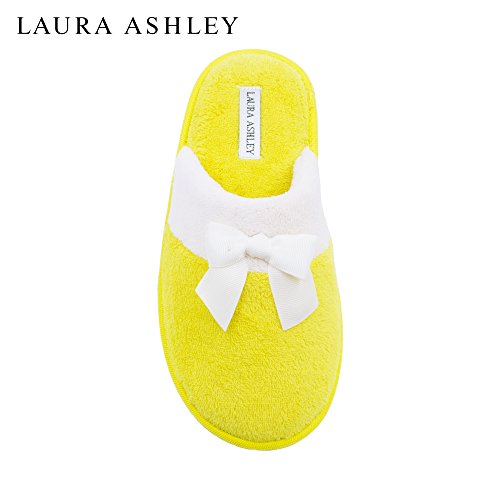 -. Binding : Apparel -. Brand : Laura Ashley -. Department : womens -. Feature : MICRO TERRY LINING AND UPR: Complete with micro terry lining, these slippers offer a never-ending softness against and underneath your feet. / MAN MADE MATERIALS: These slippers are man made material, which makes them durable. / CUSHIONED INSOLE: The cushioned insole ensures that these slippers offer all-day comfort to your feet. / BOW DETAILING: The bow detailing on the top lends these slippers a cute and attractive look. / INDOOR/OUTDOOR SOLE: These slip-on slippers can be worn both indoors as well as outdoors. -. ProductGroup : Shoes -. ProductTypeName : SHOES -. Title : Laura Ashley Ladies Terry Scuff Slipper with Bow (See More Colors & Sizes)
