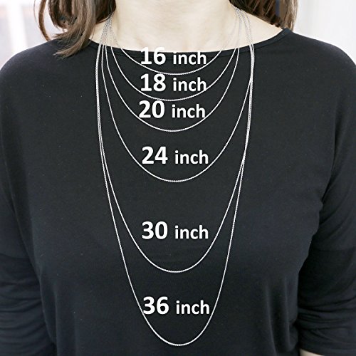-. Feature : Unsure what length chain to buy? 18 inches is the standard length and will look great on most people. / This chain necklace is made of solid rhodium plated sterling silver and stamped "925". / This classic necklace is a great choice for wearing with your favorite pendant. / Chain is 1.3 mm thick, comes in: 16, 18, 20, 24, 30 and 36 inches long.