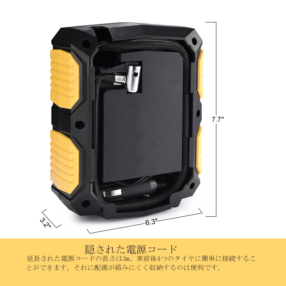 Air from the tire can be put in by the power from the car accessory socket (cigar socket).