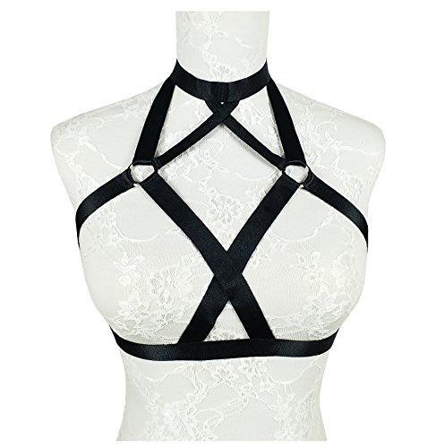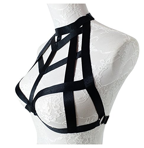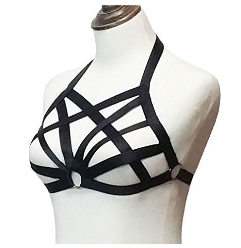 -. Title : Jelinda Women Harness Elastic Cupless Cage Bra Hollow Out Strappy Crop Top One Size