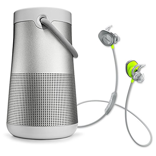 -. Feature : This Bundle contains 2 items: (1) Bose SoundLink Revolve+ Bluetooth Speaker - Lux Gray& (1) Bose SoundSport Wireless In-ear Headphones - Citron / The Bose SoundLink Revolve+ Bluetooth Speaker is a true 360° speaker engineered to spread deep, jaw-dropping sound in every direction. / Enjoy up to 16 hours of play time from a long-lasting, rechargeable, lithium-ion battery / Bose SoundSport Wireless In-ear Headphones keep you moving with powerful audio and Stay Hear+ tips. / Sweat and weather resistant ; Up to 6 hours battery life per charge