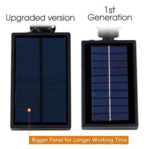 Upgraded frosted solar panel, no protective film needed. IP65 waterproof, heatproof and super bright-200 lumen output, 4 x 50 lumen enhanced LED