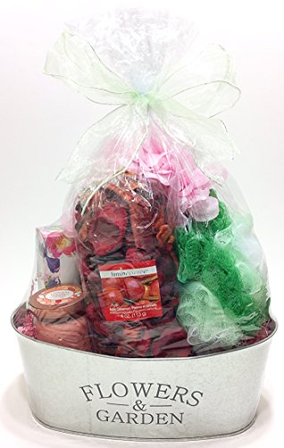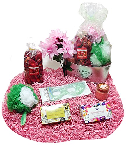 Aromatics & Bath Mothers Day Gift Basket Planter - Potpourri, Candle, Soaps, Eye Mask, Sponge & Flowers (R)