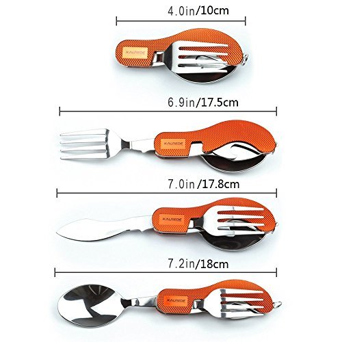 Studio : Evergo Home Publisher : Evergo Home Product Description 4-in-1 Camping Utensils Set include: (1) Spoon (2) Fork (3) Bottle opener (4) Knife.