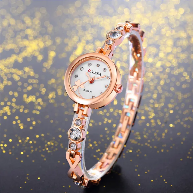 | [해외] 새로운 디자인 Relogio Feminino 여성 팔찌 시계 패션 여성 합금 다이얼 석영 아날로그 라인 석 팔찌 손목 시계 #0901 |