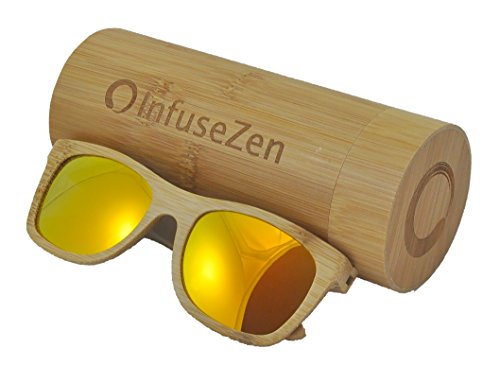 QUALITY - Lightweight wood frame with style! Flexible stainless steel spring hinges make these glasses easy to put on and remove. Round wooden sunglasses case included.