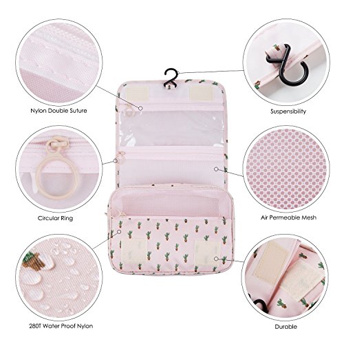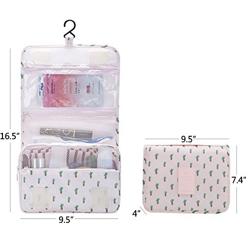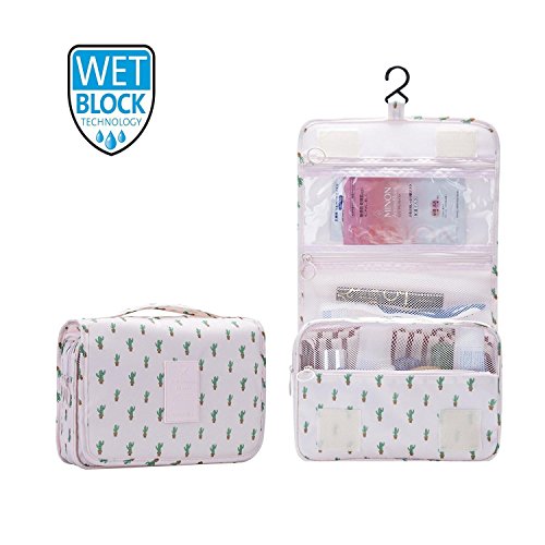 2018 New Hanging Toiletry Bag Bathroom Organizer Travel Nylon Portable Cosmetic Bag for Women and Men, (Cactus)