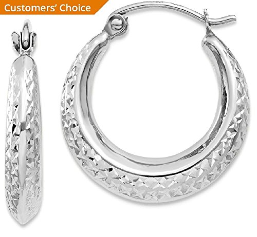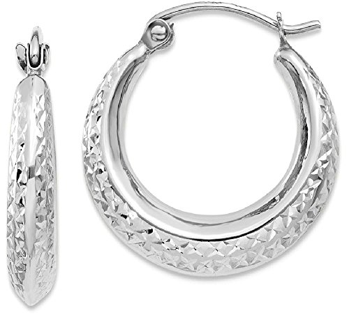 ICECARATS DESIGNER JEWELRY 14K WHITE GOLD TEXTURED HOOP EARRINGS EAR HOOPS SET FOR WOMEN