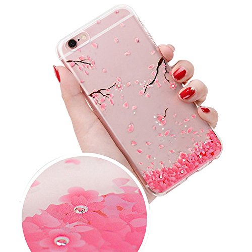 -. Title : Clear Case for iPhone 7,Silicone TPU Cover for iPhone 7,Herzzer Luxury [Ultra Thin] Scratch Resistant [Pink Cherry Blossom Flower] P.R.Int Crystal Rhinestone Diamonds Soft TPU Gel Rubber Skin Cover
