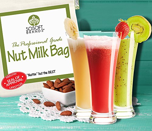 • Sosoft Brands Nut Milk Bag is the preferred choice of Chefs, Juicers, as well as Natural Food Lovers. The Sosoft Bag is Super Strong and guarantees no Pulp in your Nut Milk or Juice. The Size and premium grade mesh of our Bag makes It much Easier to handle and Squeeze for Cleaner, Fresher and Faster Results & You'll NEVER Have to Filter Your Almond Milks or Cold Brew Coffee Twice. The Sosoft Nut Milk Bag has a Super Fast Rapid Drying time to keep it mold free . Our SOsoft Bag makes Small 8oz, 12oz, 16oz or Big 4 Quart Recipes Easily. The SOsoft bag is also the ideal size and Shape for easily filtering and Pouring Without any spills. Clean and Sanitary you can squeeze it as hard as you want its Professional Grade and Tested by the most discerning chefs and Elite Juicers - The Sosoft Brand Nut Milk Bag is the Strongest, Smoothest, Easiest, Longest Lasting and Easily the Most Versatile Nutbag, Juicing, Cold Brew Coffee and Nylon Food Strainer Available. Made from the finest Professional Grade Italian Mesh - Triple Nylon Seams - This was made for Heavy Commercial Use so it easily holds up to daily household use. Food Grade Certified - BPA Free - Our bag is far better than ones made from cheesecloth and they last longer. You Can Squeeze it With two Hands Unlike the Smaller Bags - The Best Almond Milk Maker - Nut Milk Maker - Vitamix Blender Juicer - Cold Brew Coffee Maker - Blendtec Blender Juicer - Toddy Coffee Maker - Cold Tea Brewing - Sprouting - Our bag is the best performing and highest grade bag Guaranteed or your money back - Start Making the Most Delicious, Nutritious, Creamy & Silky Smooth, Nut Milks & Juices with no pulp or make the smoothest Cold Brewed Coffees that are low in acid and taste great. The Sosoft NutMilk Bag is Only Available on Amazon.