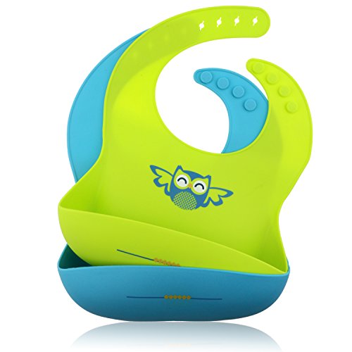 -. Title : ONME Waterproof Soft Silicone Baby Bib With Pocket,Easy To Wipe Clean Bacteria Resistant Cute Bibs for Babies or Toddlers Set of 2