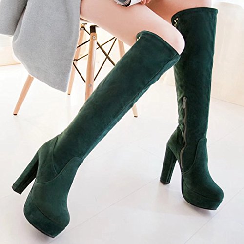 * Heel Height:12cm * Shaft: 40cm * Boots opening: 32cm * Platform Height:4cm * Material: Suede * Inner Material: Suede * Sole Material:Rubber * Color: Black, Red, Green * Toe Type: Round Toe * Closure Type: Zipper * Heel Type: Block Heel * The package will be delivered to you about 7-12 business days. * Please measure the sizes of your feet before you buy this item. If your foot is slightly wider or one of your toes is longer than usual, please choose the larger size. * Q1: What can I do if I have any problems? * A1: Please send email to tell us your problems first,we will reply you in 12 hours(except holiday) and try to find the best solutions,thanks for your trust! * Q2: What can I do if the products have problems? * A2: Please send us email with the problem products picture,which can help us to solve the problem in time! * AIYOUMEI commits to the shoes' design, craftsmanship have a unique study to the Excellent quality of products and timely courtesy of customer service experience, adhering to the customer is God's philosophy.Our product main conclud boots, military style, espadrilles, flat, lace-ups, loafers panties, High heels, plateau, casuals, dress shoes, oxfords and so on.If there are any problems, please feel free to contact us at any time, we are always here to help you. 0 |