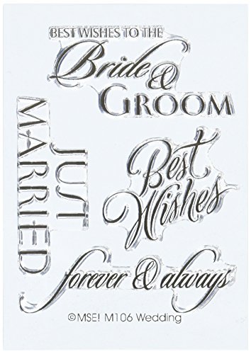 -. Binding : Misc. -. Brand : MES -. Color : Clear -. EAN : 0683203015523 -. Feature : MSE-my sentiments exactly clear stamps / For all words you want to clearly stamp clear rubber stamps are economical easy to position and store compactly / This package contains wedding: Four clear stamps on one 4x3 inch backing sheet -. Label : My Sentiments Exactly! Ltd. -. Manufacturer : My Sentiments Exactly! Ltd. -. Model : M106 -. MPN : M106 -. NumberOfItems : 1 -. PackageQuantity : 1 -. PartNumber : M106 -. ProductGroup : Home -. ProductTypeName : HOME -. Publisher : My Sentiments Exactly! Ltd. -. Size : 3 by 4" -. Studio : My Sentiments Exactly! Ltd. -. Title : MSE Wedding My Sentiments Stamps Sheet, 3 by 4", Clear -. UPC : 683203015523