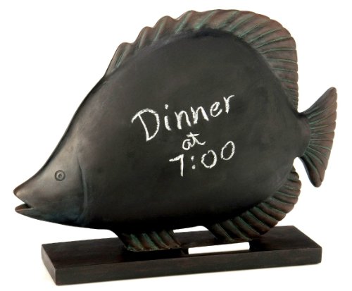 October Hill Decorative Black Chalkboard Fish Sculpture, 16 by 12-Inch