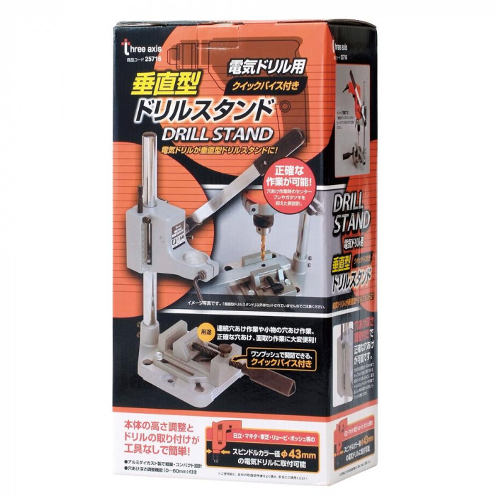 | 本体の高さと調整とドリルを工具なしで簡単取り付け!穴あけ作業時のセンターブレやガタツキを抑えた設計です。 |