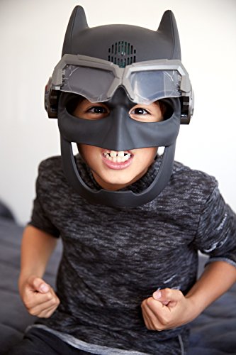 Studio : Mattel Publisher : Mattel Binding : Toy Product Description Become your favorite DC Super Hero with this iconic helmet from the Justice League movie! Batman needs advanced armament to fight Steppenwolf and the parademons, so this helmet comes loaded with special features. The pivoting tactical visor flips down to activate the edge light and emit realistic combat sounds! Fans can also speak like Batman and call out to Justice League team members. Simply press the button on the side of the goggles to drop them down and activate the voice changer! You can also choose the alternate mode and play phrases and other sound effects. With this authentic, tech sleek light up cowl, you will feel like a DC Super Hero! 0