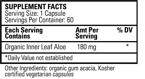 -. Feature : 200x concentrate formula contains the most bio-available certified-organic aloe high in acemannan; Contains a minimum 15% acemannan content with greater than 7% bioavailable and greater than 10% immunomodulatory; Meets quality and purity standards of the International Aloe Science Council / Offers over 200 biologically active amino acids, vitamins, antioxidants, minerals, and enzymes; Encourages normal lipid profiles and cardiovascular health; Supports vibrant, better looking skin / Supports healthy immune system; Encourages normal pH levels; Acts as a prebiotic for intestinal flora; Incredible source of powerful antioxidants and vital nutrients / Soothes entire body, from digestive tract to sore joints and muscles; Excellent nutritional support for the liver; Helps enhance absorption of vitamins and other nutrients / Easy vegetarian capsules have no bitter taste and are convenient for travel; All-Natural; Vegan; GMO-Free; Gluten-Free; No toxic additives; Made in the USA using eco-friendly, sustainable manufacturing