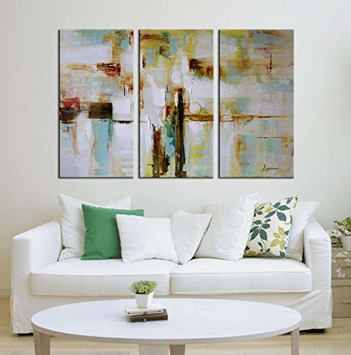 -. Title : ARTLAND 100% Hand Painted Framed Modern Wall Art "Wonderful Life" 3-Piece Gallery-Wrapped Abstract Oil Painting on Canvas Ready to Hang for Living Room for Wall Decor Home Decoration 24x36inches