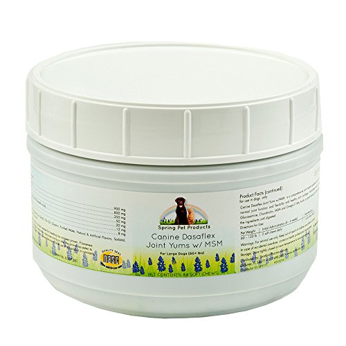 - Feature : Canine Dasaflex Joint Support Yums w/ MSM, Glucosamine,Chondroitin,Turmeric,Bosweilla,EPA and DHA is great for all dogs, active, working, senior and agility. / Recommended by veterinarians to support healthy joint function and may help to alleviate pain and discomfort with normal daily activity. / Contains Boswellia Oswellia Serrata extract (Frankincense) which is a COX-2 inhibitor which has been studied for its effects on COX-2 and LOX-5 enzymes and its ability to reduce inflammation and showed an improvement in joint function. Anti-oxidant Omega 3 Fatty acids derived from fish oil also helps support immune and joint health. Also contains Tumeric which when added with other ingredients has been shown to reduce the pain associated with osteoarthritis / NASC (National Animal Supplement Council) Seal to insure freshness, purity and quality ingredients that are all made in the United States / Bonus e-book "Pet Care for Kids" included with your purchase delivered by e-mail to download in PDF format. Written by a veterinarian, it is a fun way to teach your children how to properly take care of their pet. Also includes pages for them to col