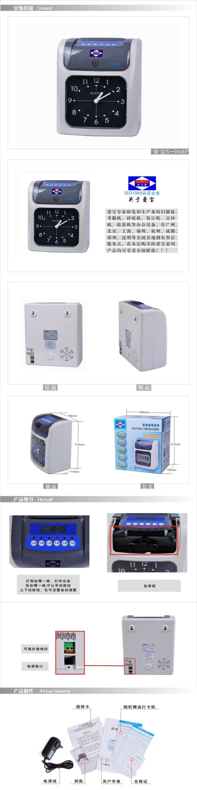 Aibo S-960SP punch card attendance attendance color punch in three shifts at a glance