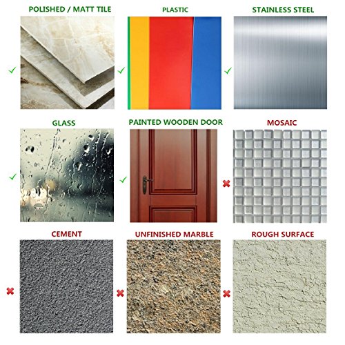 【Easy & Quick to install without tools】– Just need few seconds to install on smooth surface. No tools, no screws and no drilling hole on the wall. Please make sure the surface is clean and dry before installation. Use only on smooth surfaces such as glass, metal, ceramic tile, plastic, painted wooden door, formica, etc.