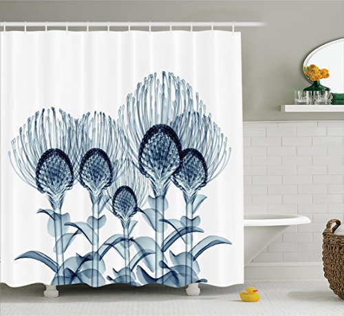 Ambesonne Xray Flower Decor Collection, Image of Exotic Plants Different Style Close Vision in Nature X-ray Uv Print Home, Polyester Fabric Bathroom Shower Curtain, 75 Inches Long, Teal White