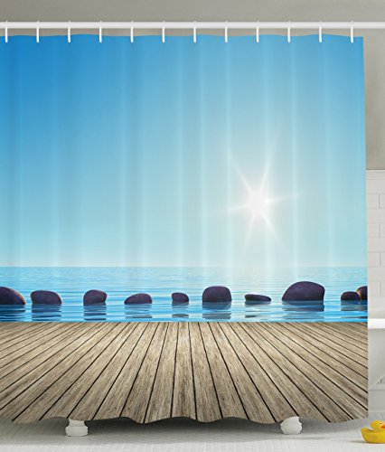 Ambesonne Nautical Decor Step Stones in the Ocean Artistic Beach Sea Life, Polyester Fabric Bathroom Shower Curtain Set with Hooks