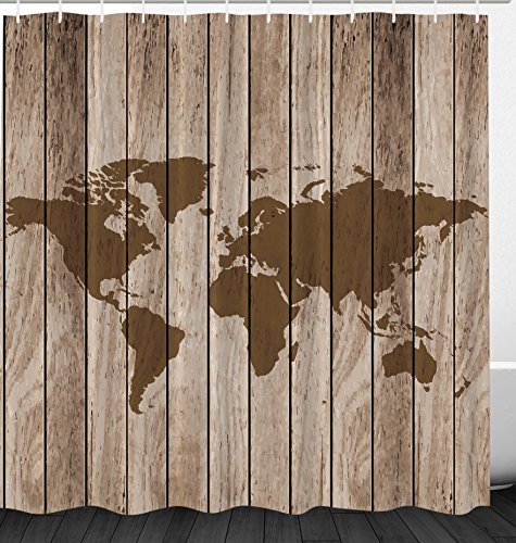 Ambesonne Vintage Old World Map Globe Wooden Antiqued Rustic Decor Polyester Fabric Bathroom Shower Curtain Set with Hooks