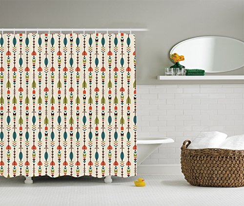 Ambesonne Arrow Decor Collection, Ethnic Arrows Pattern Design Ancient Weapon Art, Polyester Fabric Bathroom Shower Curtain Set with Hooks, 75 Inches Long, Green Orange White Blue Brown