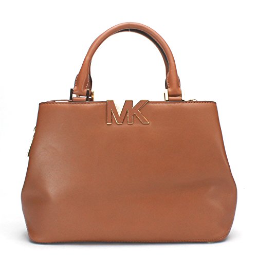 -. Title : MICHAEL Signature MK Leather Satchel, Walnut