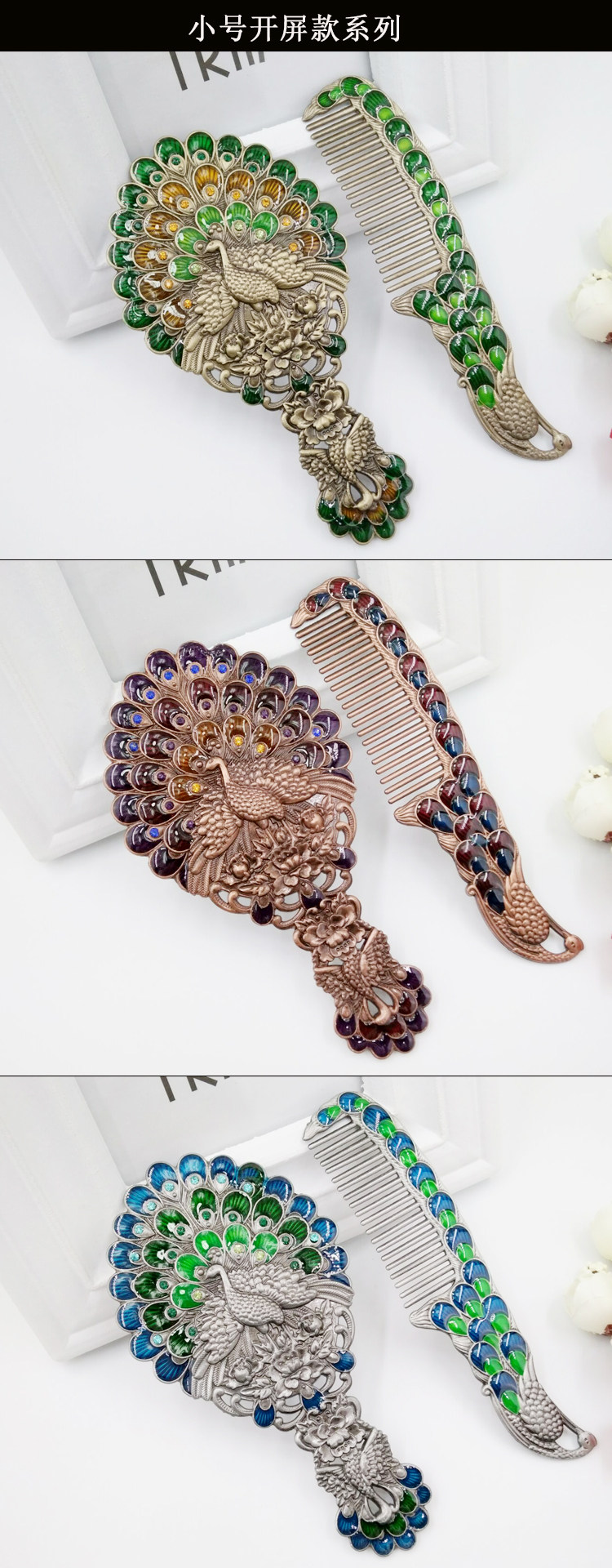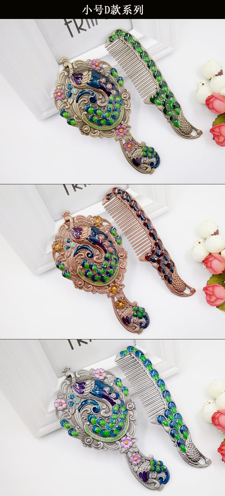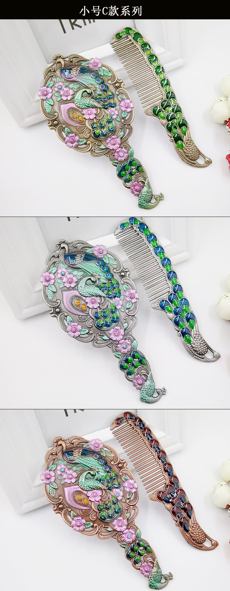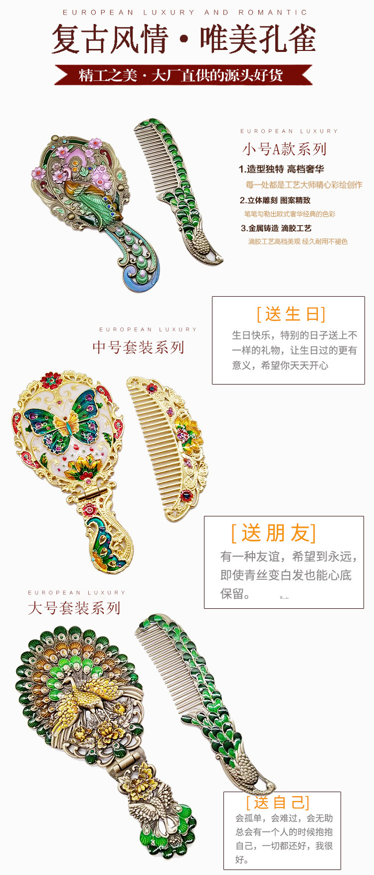 俄罗斯复古小号化妆镜手柄镜子梳子套装随身便携手持镜生日礼物女