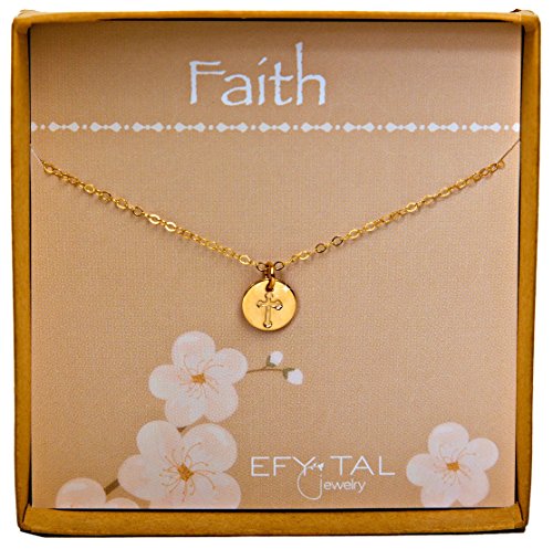 Efy Tal Jewelry signature sweet and dainty gold filled cross necklace. These crosses are hand-stamped with orthodox style symbol and are an inspirational reminder of spiritual belief and Christ's love.