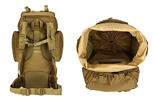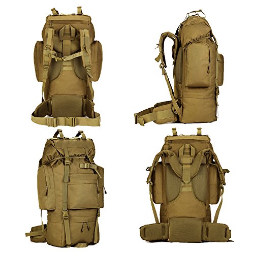 -. Feature : Suitable for fitness, outdoor travel, hiking and other outdoor activities. / Chest sliding adjustment system can quickly adjust to their comfortable state / MOLLE external expansion system designed to be used in combination with other equipment,you can load pockets,water bottle bag,accessory kits and other / The bag works well with a variety of different outfits and casual styles. / Super large 65L capacity and high quality advanced material and hardware