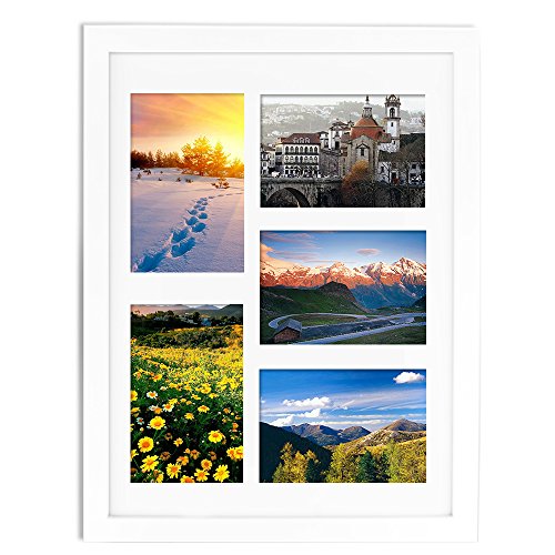 11x14 Picture Frame, Alotpower 5 Openings Decorative Wood Photo Collage Wall Hanging Picture Frame,White