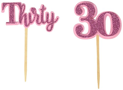 All About Details Pink Thirty Cupcake Toppers, Set of 12