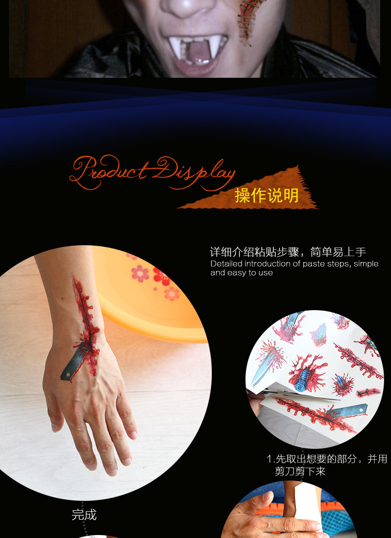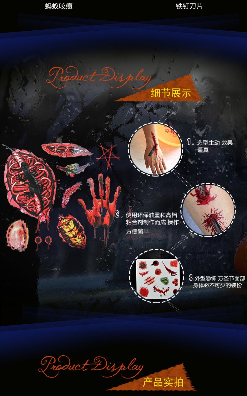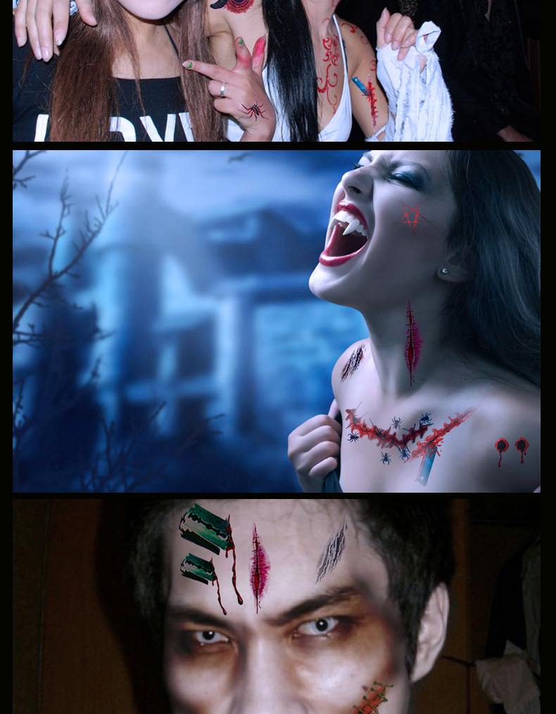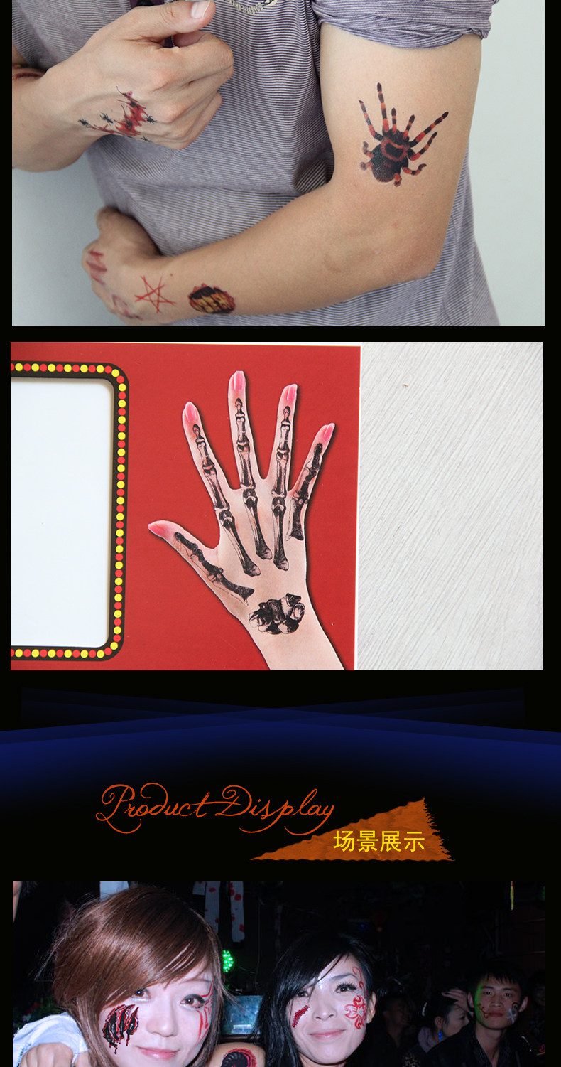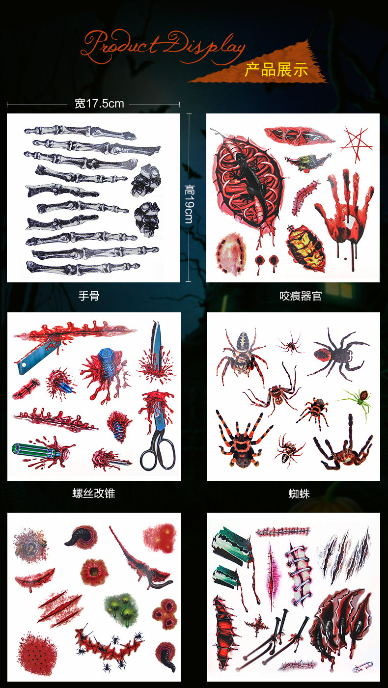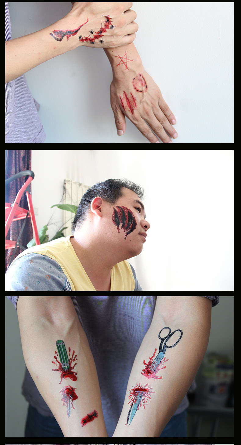 万圣节伤疤 蜘蛛纹身 文身刀疤伤痕刀伤 整蛊 仿真假伤疤