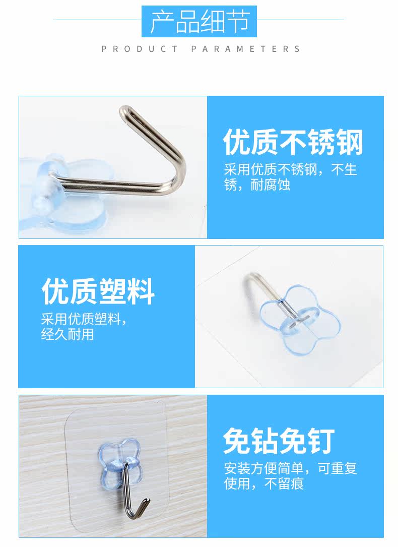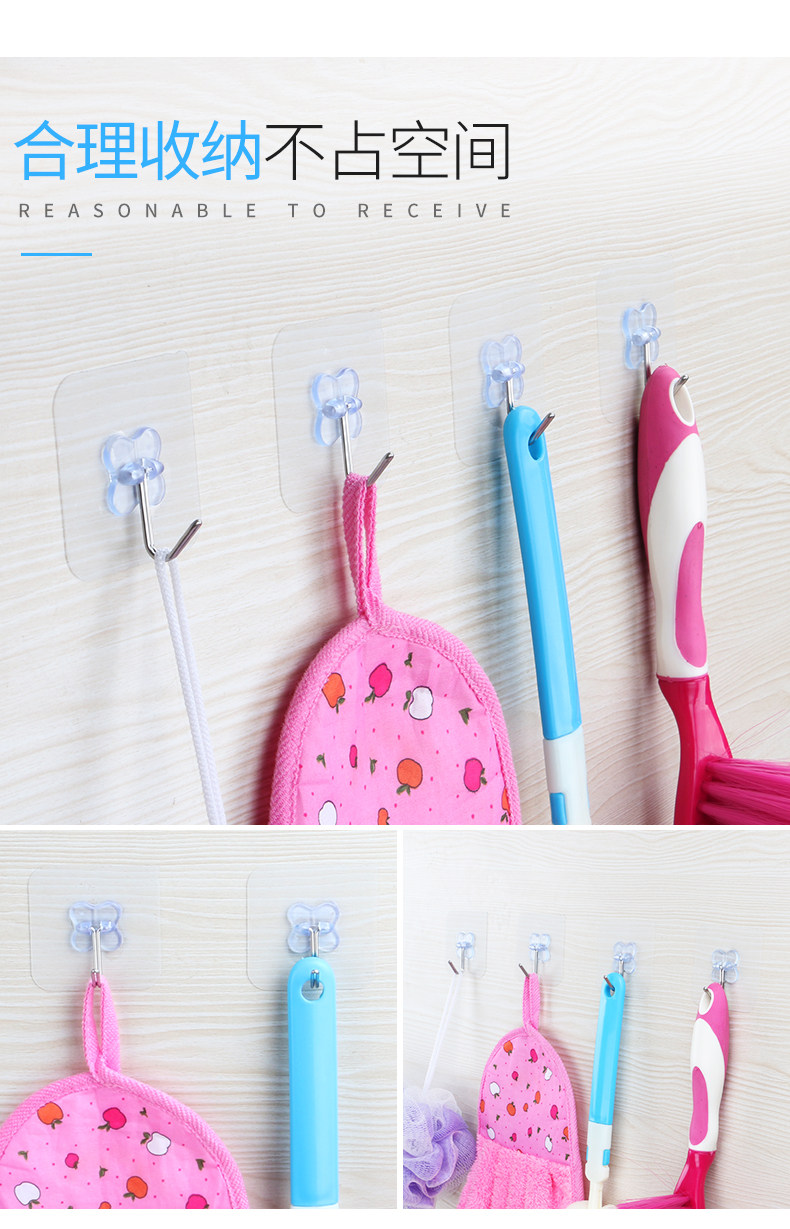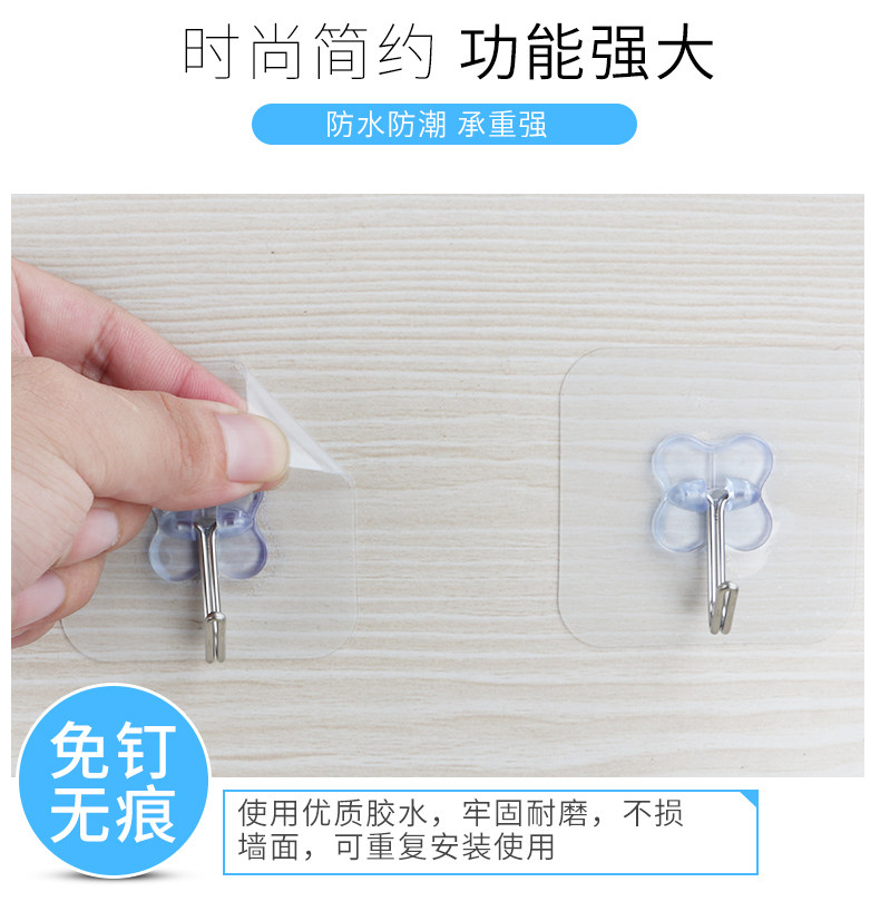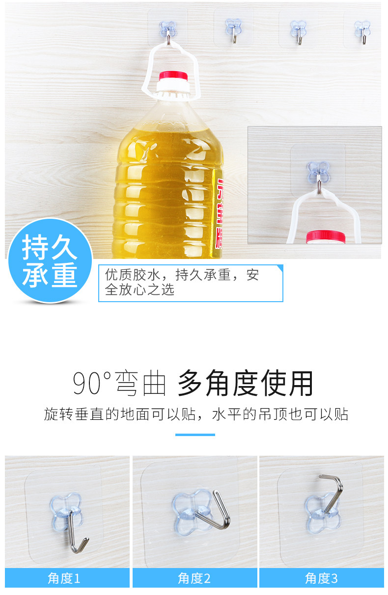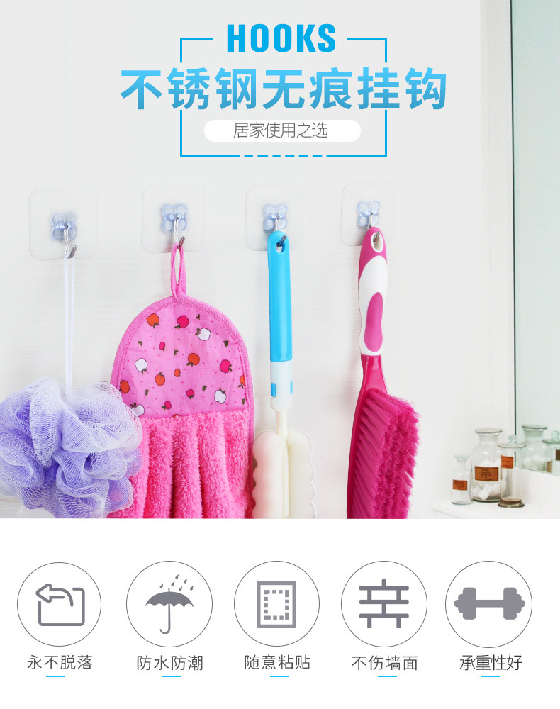 防水透明挂钩粘钩强力无痕吸盘厨房浴室玻璃墙壁免钉承重粘钩