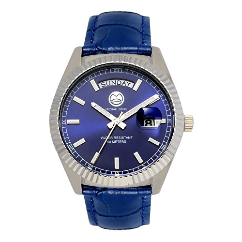 -. Title : Michael Zweig "Aulos" 38 mm Mid Size Unisex Day Date Fluted Bezel Luxury Watch (Blue)