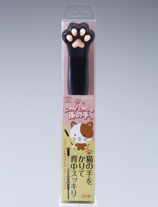 | かわいい猫の手をモチーフにした伸縮可能な孫の手。 |