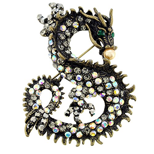 -. Title : Vintage Style Chinese Dragon Crystal Pin Brooch And Pendant