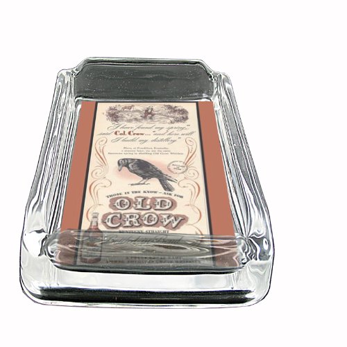 -. Title : Glass Square Ashtray Old Crow Kentucky Whiskey Vintage Ad Whiskey D-026
