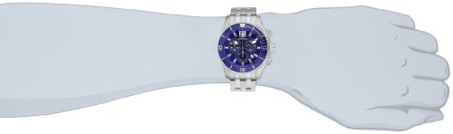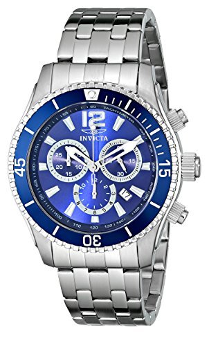 Studio : Invicta Publisher : Invicta Binding : Watch Product Description Stainless steel case with a stainless steel link bracelet. Unidirectional blue ion-plated bezel. Blue dial with luminous hands and index hour markers. Arabic numeral marks the 12 o'clock position. Tachymeter scale appears around the outer rim. Luminiscent hands and markers. Date display appears between the 4 and 5 o'clock position. Chronograph - three sub-dials displaying: 12 hours, 30 minutes and 60 second. Swiss quartz movement. Scratch resistant flame fusion crystal. Push / puull crown. Solid case back. Case diameter: 45 mm. Case thickness: 13 mm. Fold over clasp with safety release. Water resistant at 100 meters/ 330 feet. Functions: hours, minutes, seconds, calendar, chronograph, tachymeter. Invicta II Blue Dial Tachymeter Chronograph Mens Watch 0620.