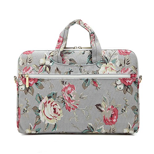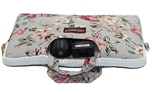 Canvaslove Rose Blue Pattern Canvas Laptop Shoulder Messenger Bag for 14 Inch 15 Inch 15.6 inch Laptop and Macbook Pro 15 laptop Case
