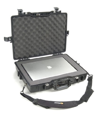 Studio : Pelican Publisher : Pelican Binding : Electronics Product Description 1495WF Color: Black Pictured in black Features: -Laptop case with foam.-Available in Black and Desert Tan.-Watertight, crushproof and dust proof.-Open cell core with solid wall design - strong, light weight.-Automatic pressure equalization valve O-ring seal.-Comfortable rubber over-molded handle.-Stainless steel hardware.-Double safety locking latches with keys.-Pick 'N' Pluck with convoluted lid foam.-Personalized nameplate service available.-Unconditional lifetime guarantee of excellence.-Double safety locking latches with keys. Includes: -3 dial combination lock included. Dimensions: -Fits up to 17' laptops.-Exterior dimensions: 17.25' H x 21.63' W x 4.75' D.-Interior dimensions: 13.13' H x 18.75' W x 3.81'D. 0