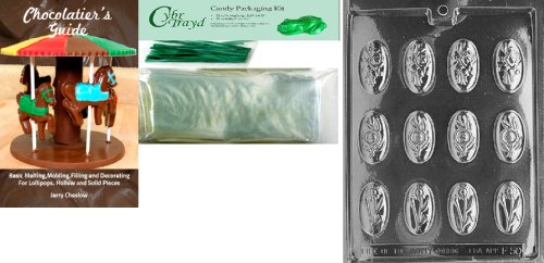 Cybrtrayd MdK25GRBk-F050 Oval Flower Pieces Fruits and Vegetables Chocolate Candy Mold with Chocolatier's Bundle, Includes 25 Cello Bags, 25 Green Twist Ties and Chocolatier's Guide