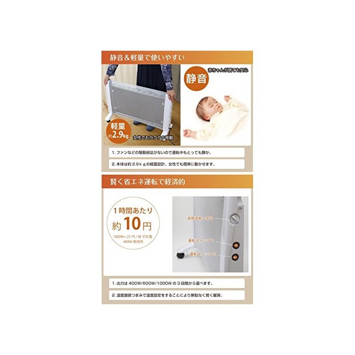 원본상품명: 遠赤外線 面パネルヒタ [400/600/1000W] (面熱)(音設計)(倒時自動OFF機能)(度過上昇防止)(安全置)(超スリム) 【約 2.9 ㎏の量設計 推:7】